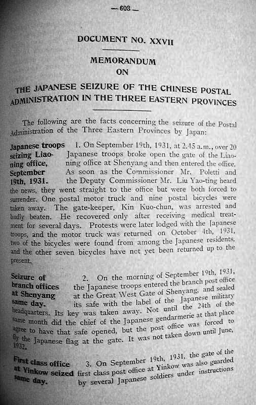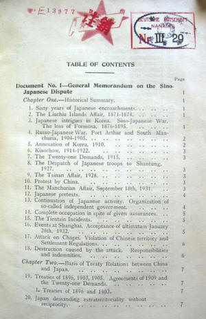 Manchuria starting in October 1931. This copy was kept at the Nazi German
