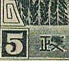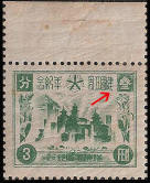 | Zirkle and Akagi both mention a hook on the "Chien" character at the top of the 2nd stamp on the sheet of 70 3f stamps. Akagi also mentions a variety associated with the 53rd stamp, a dot just inside the margin see above. To see a full sheet click here (3Mb). | ||||||