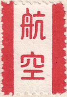 These labels read 航空 Hángkōng (Chinese) or Kōkū (Japanese) the literal meaning being "aviation" and short for Air Mail. The label on the left can be found used in Japan from 1929 if not before. Stocks of this label may have gone to Manchukuo when the M.A.T.C airmail service was launched - see an example on an early cover here. Originally the 18mm wide labels were supplied as a tape which needed to be cut. A later version was supplied in a perforated, tear-off roll (shown right). This form of label is probably specific to Manchukuo. Note; J.A.T.C. (Japanese Air Transport Co) used an almost identical label using a red stripe (see below). The Manchukouan version was based upon this model. |