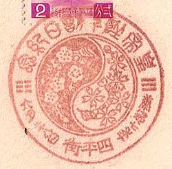 - Issued 1st October 1940. 臨時國勢調査紀念 reads Commemorating the Special National Census. This cancel is connected with the National Census, the design being based upon the emblem used upon the uniforms of the census takers. The census stamp issue came into use three weeks before the census was conducted, the cancel was only used upon the exact day of the census. Size 34.5mm dia. Known colours - deep violet, red, and reddish brown. |