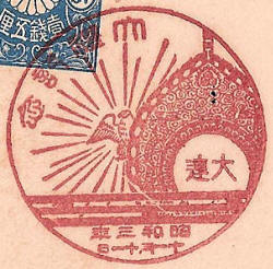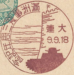 The Kwantung Leased Territory was never a part of Manchukuo but many of the cancels reflect events in Manchukuo and its association with Japan. My research shows about a 100 cancels connected to the Kwantung Leased Territory. This is not a complete list, as I find more examples I will add them. Use the "Monitor this page" box in the menu if you would like to know when more are added. These cancels were issued in the Kwantung Leased Territory and are all dated by using Japanese era dates. It should also be noted the some place names read from left to right instead of the usual, right to left.