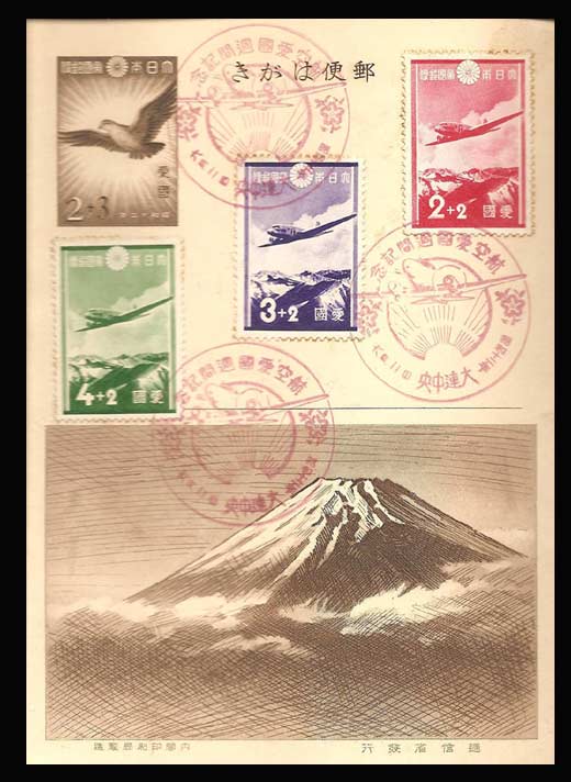 September 1922. 關東廳始政十六周年記念 Sixteenth Anniversary of the Kwantung Prefectural Office Also issued were two commemorative post cards in a special envelope Known colours - blue |