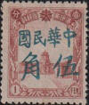 This is a hard blue 中華民國 Chinese Republic, overprint with a surcharge below. |