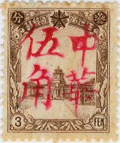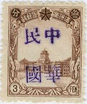 | This is a clear purple surcharge reading 中華民國 Chinese Republic,暫作Temporarily for followed by the surcharge. | ||||||||