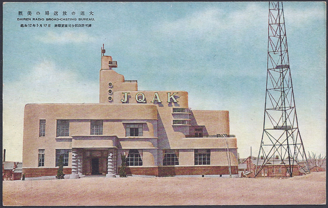 A Postcard showing the new radio station in Dairen. A cancel reading "Harbin commemorate the completion of the Central Broadcasting Bureau" this is dated 20th March 1941. |