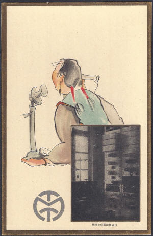 The MTTC launched a modern international telegraph system on 12th December 1935 when a connection to Paris became operational. Telecommunications were not new in China or Japan, the Empress famously had a telephone installed within reach of the throne, while in Tokyo an exchange was established in the early 1880's. Postcards of any town in Manchukuo shows streets lined with telegraph poles all containing large numbers of wires.