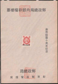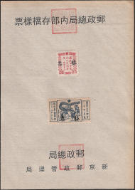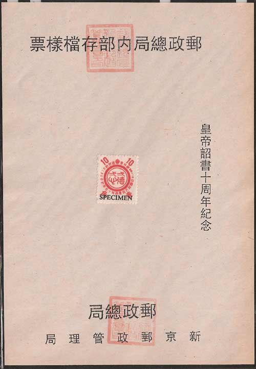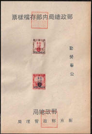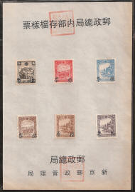 Fake Manchukuo Specimen Stamps on Sheets For the past few years specimen stamps on sheets, have been appearing for sale on online auction sites. These sheets are not mentioned by Zirkle, Schumann, Akagi or indeed any other writers on the subject of Manchukuo stamps. Having canvassed several knowledgeable dealers, the consensus of opinion is that they are fakes recently produced in Beijing. Manchukuo never issued specimen postage stamps in this form. The Post Office of Manchukuo introduced new stamps to domestic postmasters, and to member countries of the U.P.U. in a special presentation booklet (some examples are shown in this website). Following the Japanese practice of this time, these two page folded booklets explained the background of the new issue and contained sample stamps to be used for reference purposes, these stamps were not overprinted. Money Order Stamps and Postal Saving Stamps (first issue only) can both be found with a specimen overprint in Chinese, however these were also distributed glued into booklets and were never issued on printed sheets. The characters for the term "specimen" used on the genuine Money Order Stamps and Postal Saving Stamps could be applied to specimens of anything, ie; blood, etc., the characters used on the fakes are reserved for banknotes and stamps, so while technically correct, were the wrong form for Manchukuo. Postcards were also circulated in a special presentation booklet and these also never carried a specimen overprint of any sort. If you bought these sheets recently it might be possible to obtain a refund, if not, take the long view and hope that in 50 years these also become collectable. Currently they are pretty but worthless.