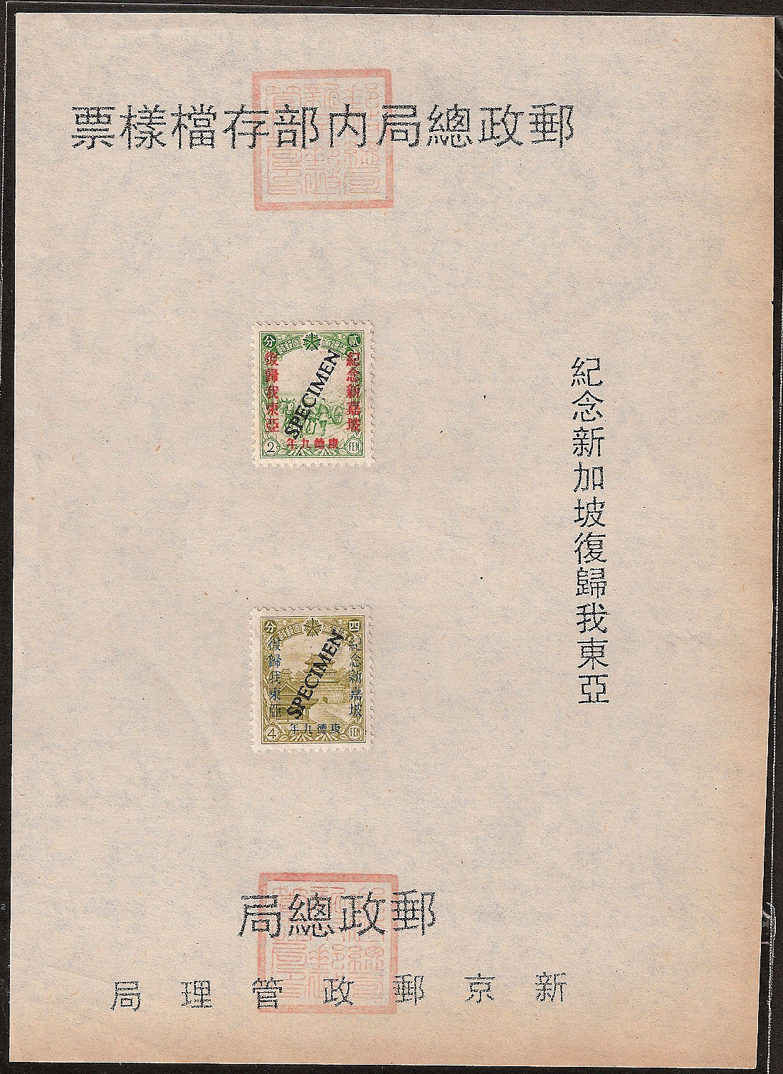 fake "Specimen" stamps produced for Republic of China issues.
