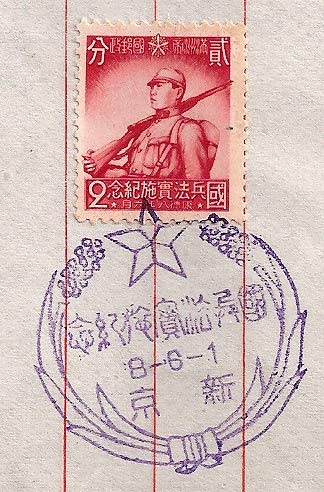 Manchukuo Fakes and Forgeries Some of the common fakes and forgeries are shown below, please email if you have any information of other forgeries. NEW Fake Inverted Surcharge This looks like a convincing example of 1935 surcharge (3f on 4f - no watermark) in this instance inverted. There have been no reported sightings of an inverted surcharge in over 70 years since this stamp first appeared - this copy is a fake. The most obvious error is the cancel date - the 21st Year (廿 _ over 年) and also the way the Date Number, 年 Year Character and Town Characters all line up, find me another example where this happens - look at your used stamps and you will see that the 年 (year) is always too close to the edge of the circle for a town character to appear directly below it. Fake Usage This item was advertised as a very rare Manchukuo telephone bill. It is a telephone bill but it is Japanese (the box on the right "Office originating call" is Shizuoka. Box to the left of that "Office receiving call" is Yokosuka). The Japanese stamps have been removed and replaced with two from Manchukuo. The faker did a reasonably good job of aligning the postmarks to match the Japanese originals. Needless to say it was sold in an online auction (you know the one). The item was returned so it is still out there somewhere folks! Fake Overprint Hot off the presses from the boys in Beijing. 試樣片 Specimen overprints on the 1936 Fourth Regular Issue (First Printing), these started to appear in May 2013 with or without punch holes. They are bogus. Fake Special Cancels Many of these forgeries, often on lined paper, were made around 2009 in China, most of them appear to have been sold through a large Chinese online auction site and some by a stamp dealer in Ginza, Japan. A few copies later found their way into the hands of collectors though Western online auctions. My thanks to Hiromasa Iitsuka editor of the Journal of the China Philatelic Society of Japan for confirming that these items are fakes..