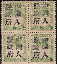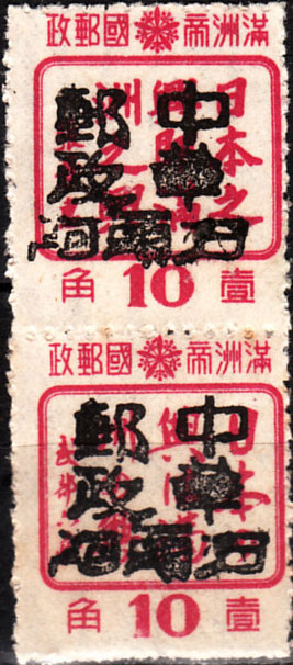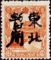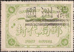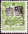 | Forgeries of the Mukden (Moukden) overprint on yellow green labels, this particular version of the label is thought by most experts to have been printed in 1938, too late for the early days of Manchukuo when this overprint would have been applied. | |||||||