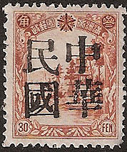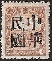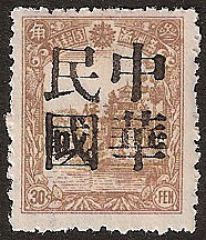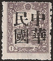 This is a four character overprint reading 中華民國 Chinese Republic in large black characters. Not regularly issued with this set is a 3f brown. |