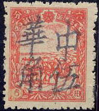 Soft black characters reading 中華 China with the surcharge below. This is a full set and these are the only stamps known for this village. |