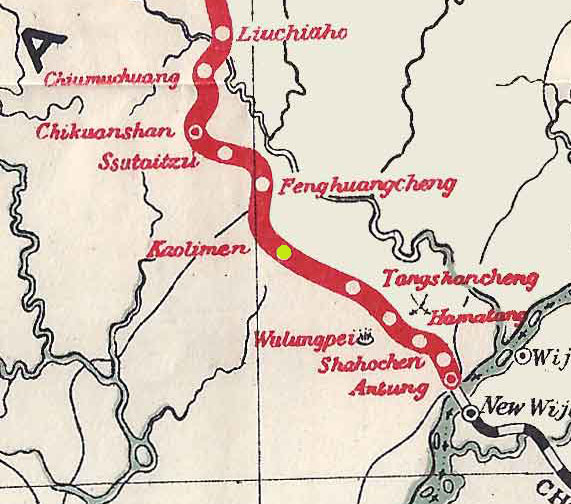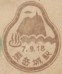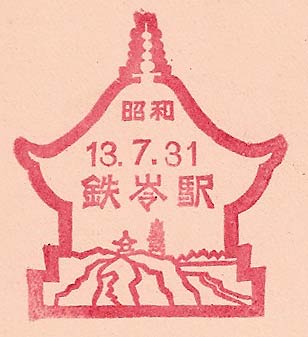 - Dated 13th February 1938 Design features - The outline if a parrot like bird in filled with scenery. This is a small station near Antung usually only found on railway maps. Design Size 47mm x 38mm . Known colours - red |