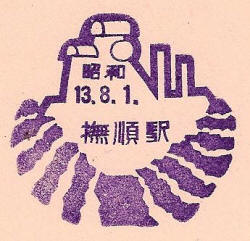 - Dated 1st August 1938. Design features - the Fushun colliery building with the stripes below representing coal deposits. Design Size 39mm x 37mm . Known colours - purple and grey blue. |