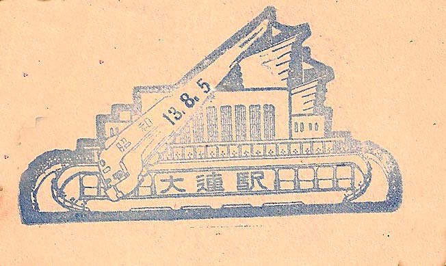 The place name is often followed by the character 驛 or 駅 (Eki) this is Japanese usage meaning station, in some instances the Chinese character 站 Zhan is used. In most instances the Cachets appear to use 昭和 Shōwa (Japanese) dating. These cachets were collected in special booklets throughout railway journeys. The cachets were available at stations for anyone to use, when the train stopped you simply got out and stamped your booklet. In addition to the railway cachets collectors added the date-stamps of hotels and tourist attractions making the booklet a complete record of the trip they had taken. Most of the booklets I have seen have included Korea, North China and the KLT as part of the journey so the use of these hand-stamps seems to have been common in Japanese occupied China at this time. |