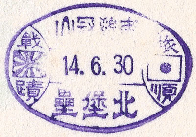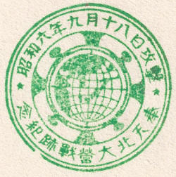 - 22nd September 1934. This date stamp commemorates a visit to the Nanling Battlefield near Mukden. Size 31.5mm dia. Known colours - Purple |