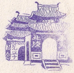 Tourist Cachet - Undated Souvenir of Peiling (Beiling) 北陵 (Northern tombs), Mukden Size 38mm x 36mm. Known colours - Purple |