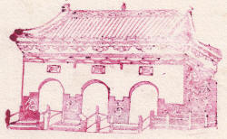 Tourist Cachet - Undated Souvenir of Peiling (Beiling) 北陵 (Northern tombs), Mukden Size 75mm x 75mm. Known colours - Red |