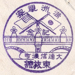 1933. 大连市催 - 満州大博覧曾記念 Organised by Dairen City - Manchuria Exposition Commemoration. This cancel was not for postal use, it is found on postcards promoting the exposition. Issue dates are unclear, they may have been issued at the showground during the exposition or beforehand on promotional cards. Size 35mm dia. Known colours - green |