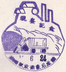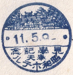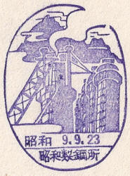 - 23rd September 1934. Design features - The Showa Steelworks at Anthan. Size XXmm dia. Known colours - Purple |