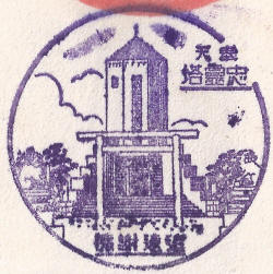 1939 Design features - Ship & Monument to the Loyal Dead - issued by the gift shop Dairen Hsitung. Size 53mm dia. Known colours - violet |