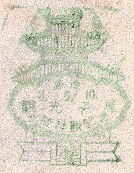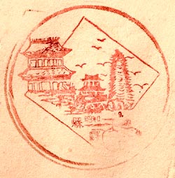August 1936 Another hotel cancel with a similar image. This one is from the Nagoya Hotel. Size 45mm. Known colours - Purple |