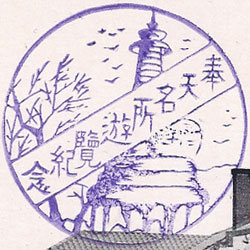 KLT Tourist Cachet - Undated Design features - Ryojun Memorial Hall, Kawatani (or Kawaya) Shop (concession). Size 66mm x 40mm. Known colours - violet |