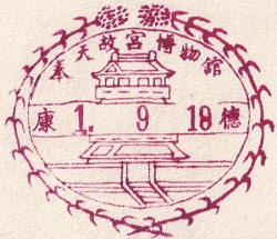 23rd June 1939 From the National Museum at Mukden. Size 46mm x 35mm. Known colours - Purple |