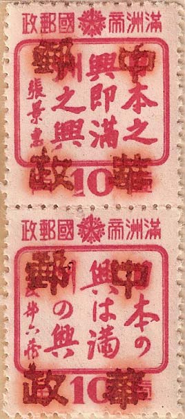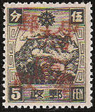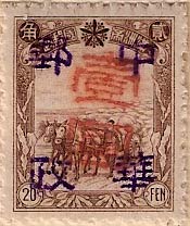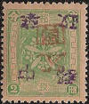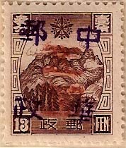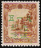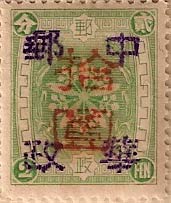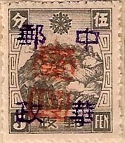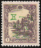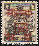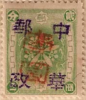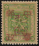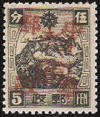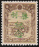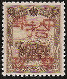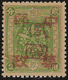 Another soft pale brown-red surcharge chop again hard to read but much narrower, this is a complete set of 2 values. |