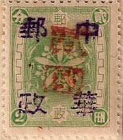 | This is a soft pale brown-red 中國郵政 Chinese Post chop with a surcharge in the centre. This design is hard to read especially as it is often applied to brown stamps. This is a full set of 20 surcharges. | ||||||||