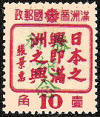 | Four character "Anniversary of Victory" commemorative set of seven values overprinted in hard green. | ||||||||
